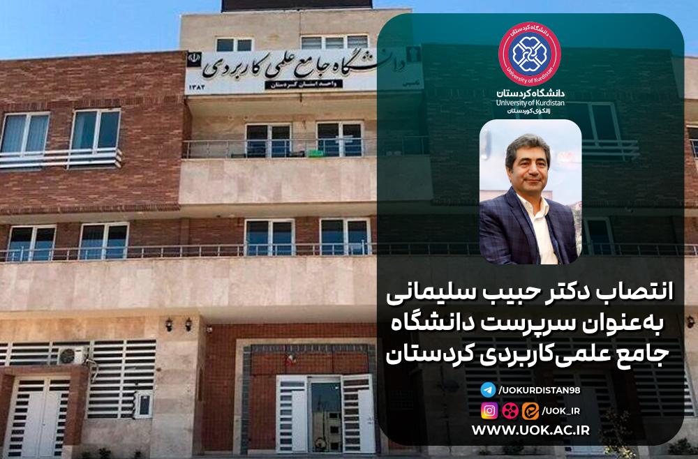 وفقاً لما أفاد به مكتب العلاقات العامة بجامعة كردستان، أصدر الدكتور محمد علي أكبري، رئيس الجامعة الشاملة للعلوم التطبيقية، قراراً رسمياً بتعيين الدكتور حبيب سليماني في هذا المنصب.