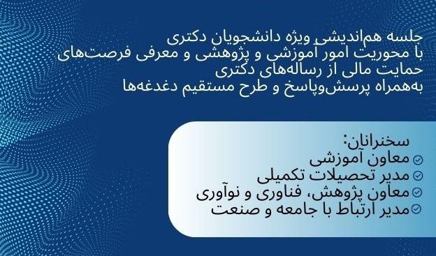 Introducing avenues for attracting financial support (grants), he remarked, "Students must move towards problem-oriented research and benefit from capacities such as the Iran National Science Foundation (INSF), the 'NAN' and 'SATE' systems, the National Elites Foundation, and the Knowledge-Based Production Leap Law."